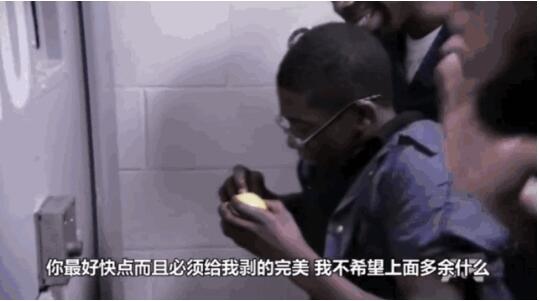 然而,這僅僅是開胃菜,更恐怖的還在後面呢。 安達爾還沒有從“瘸子幫”的恐懼中恢復,便被逼著啃橘子。 犯人要求他用牙剝乾淨。 面對鐵門內的大聲嚎叫,身後一群人的逼迫,他瘋狂地用嘴啃橘子皮,著急慌忙中連眼鏡都顧不上扶一把
