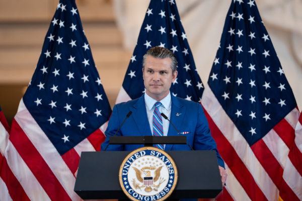 美國戰爭部長海格塞斯10月24日表示,美軍在加勒比海地區再次擊沉了一艘運毒船。圖為2025年6月26日,美國戰爭部長海格塞斯在華盛頓美國國會大廈舉行的二戰美軍游擊隊金牌頒贈儀式上致辭。(Madalina Kilroy/大紀元駐白宮記者)