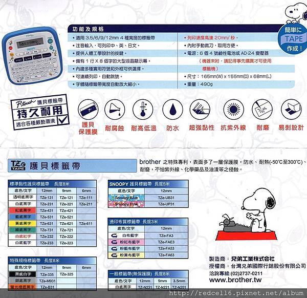 【寫在前面的三言二語】 從古到今,如何打造一個獨樹一格的個人風格一直都是大家共同追求的目標,但是隨著工業化大量生產製造及為了壓低成本而大量生產出一成不變的東西又讓人創意難以揮灑,但是山不轉路轉,特別是撇除一些耳熟能詳的菜市場名,我們每個人的姓名就是最獨特的風格禮物,在大量生產的東西上加上一點巧思就能打造出不一樣的個人風格,於是乎飲料大廠推出的個人瓶標飲料熱賣,但是終究不算是我們自己印製的,而一般的市售的姓名貼紙流於俗套及不耐長久使用,有鑑於此,擁有日本百年工藝的Brother集團結合其影像專業及標籤技術,在加上最受歡迎的SNOOPY,推出了Brother Snoopy創意自黏標籤機,讓每一個人都能夠簡單的打造出自己獨一無二的特色標籤為生活更添樂趣! 【Brother Snoopy創意自黏標籤機官方規格及產品特色】