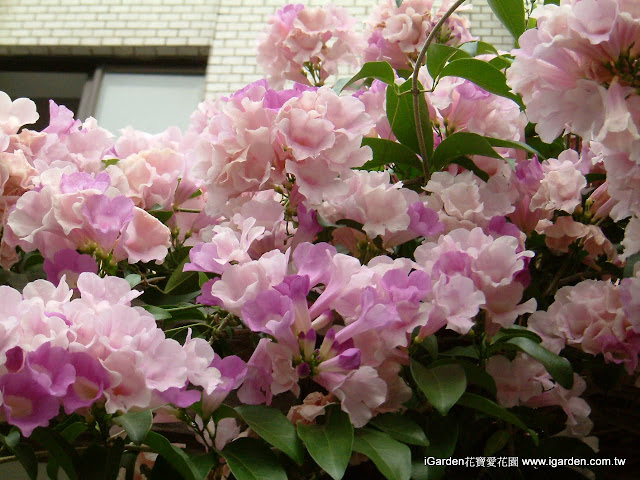 藤本花卉不開花時實在很難引起注目,因為同樣都是整片綠葉覆蓋,也不會去細究它們的身份;一旦開花了,才讓人恍然大悟,原來它們也是會開花的!蒜香藤也是不開花則已,一開花就艷驚四座。只是這麼柔美的花,怎麼名字會有一個’蒜’字呢?