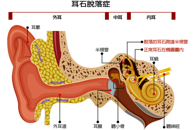 袁建漢解釋,耳朵除了接收聲音,也掌管人類前庭系統,能察覺身體移動及旋轉等動作,以維持身體平衡,一旦前庭系統異常,指標症狀便是眩暈。