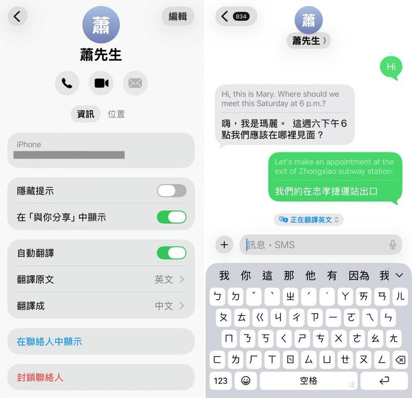 備受關注的即時翻譯,整合於電話、訊息和FaceTime等功能中,用戶也能搭配AirPods Pro 3等裝置使用。不過,現階段還不支援第三方App,如LINE、WhatsApp等,可期待未來開放。