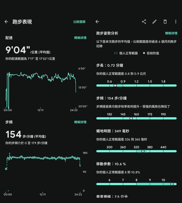 運動的時候,除了計算心率、消耗卡路里,在跑步的項目上,Google 提供更細緻的數據分析。
