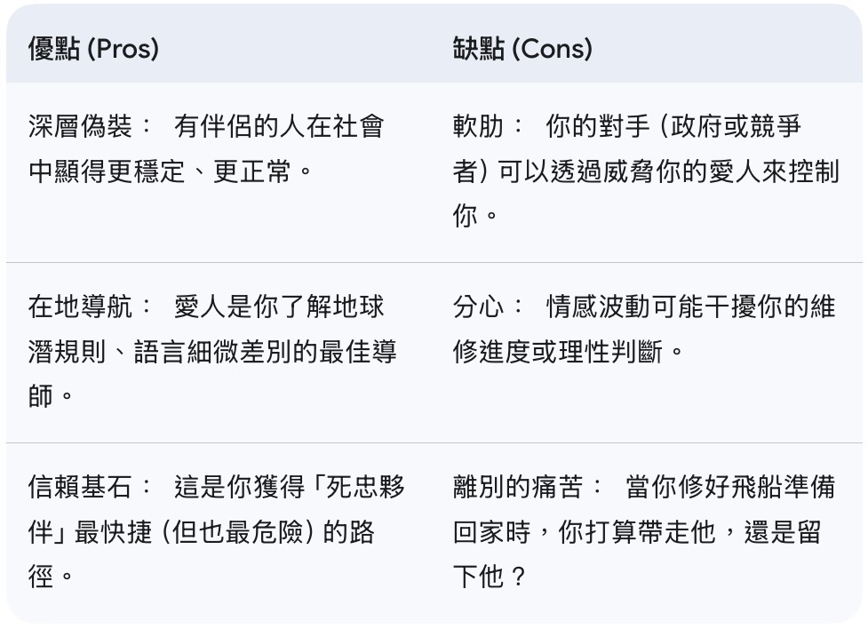 2. 適度展現弱點: 地球人很難信任一個「完美的人」。偶爾展現出對地球文化的不解或生理上的疲憊(偽裝出的),會讓他們產生保護欲,從而深化連結。