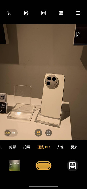 realme GT 8 Pro 有獨家的 GR 影像模式,能夠切換多種濾鏡,並且預設 28、40mm 兩種焦段。
