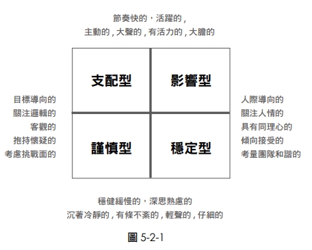 2.依照行為反應、思考判斷的方式,可以粗略分成支配型、影響型、謹慎型及穩定型。